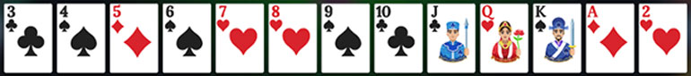 | ชุดเรียง 3 ถึง A | มีไพ่ที่เรียงกันตั้งแต่ 3 จนถึง A ในสีหรือดอกใดก็ได้ | |